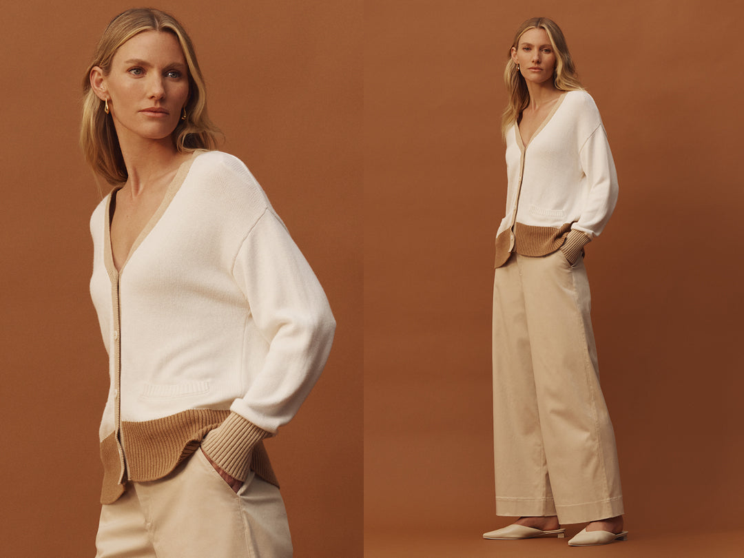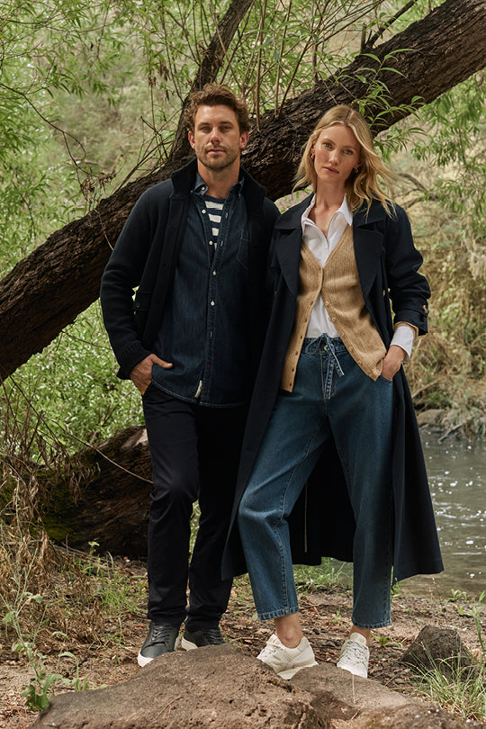 Stay cosy in the luxe Mica Cardi in Camel paired effortlessly with the Tranquil Knit. Both crafted from a cotton cashmere blend, these knits are beautifully soft and warm.
